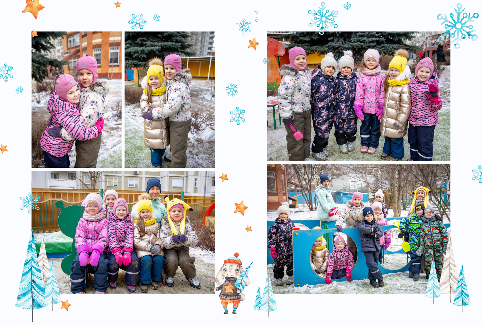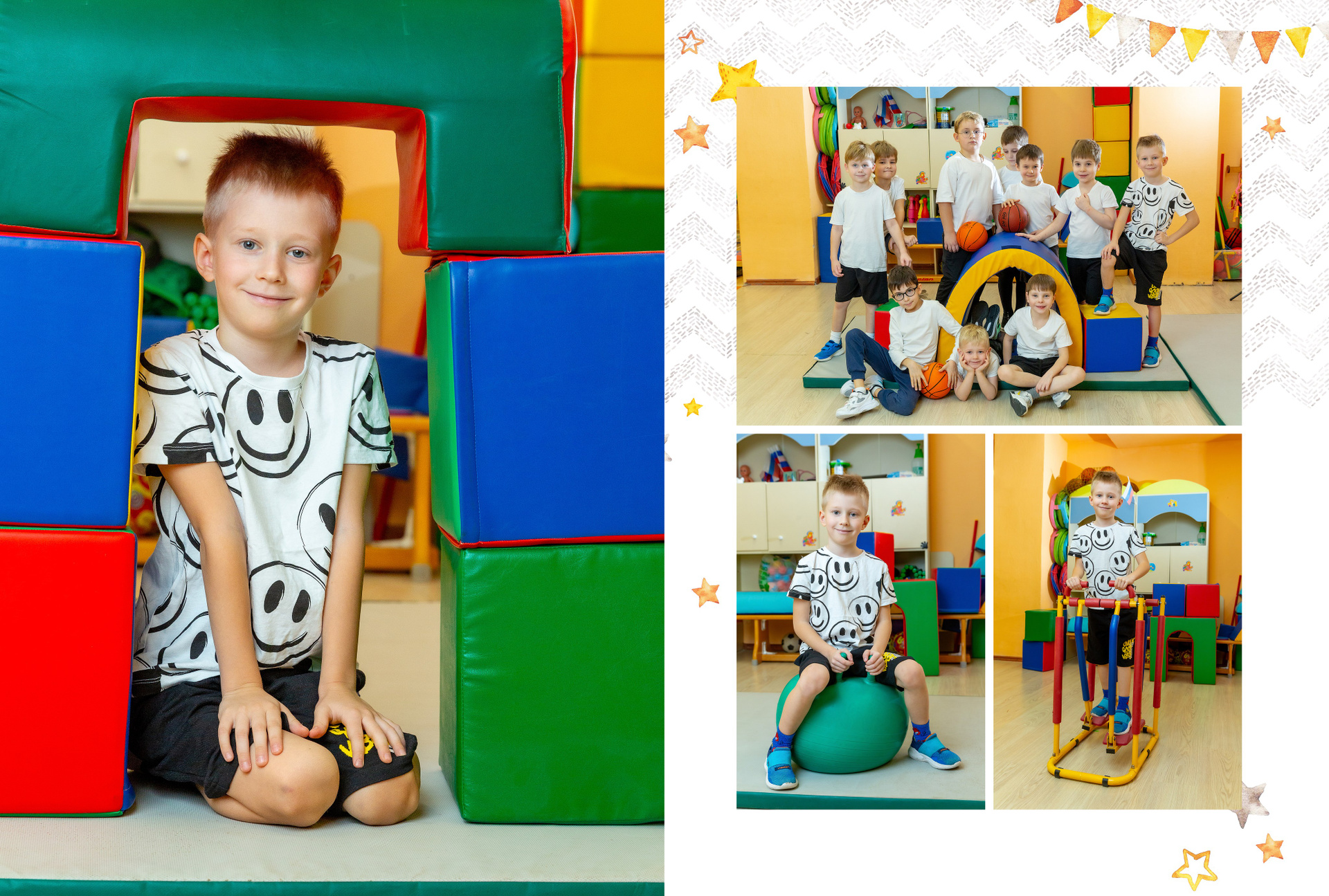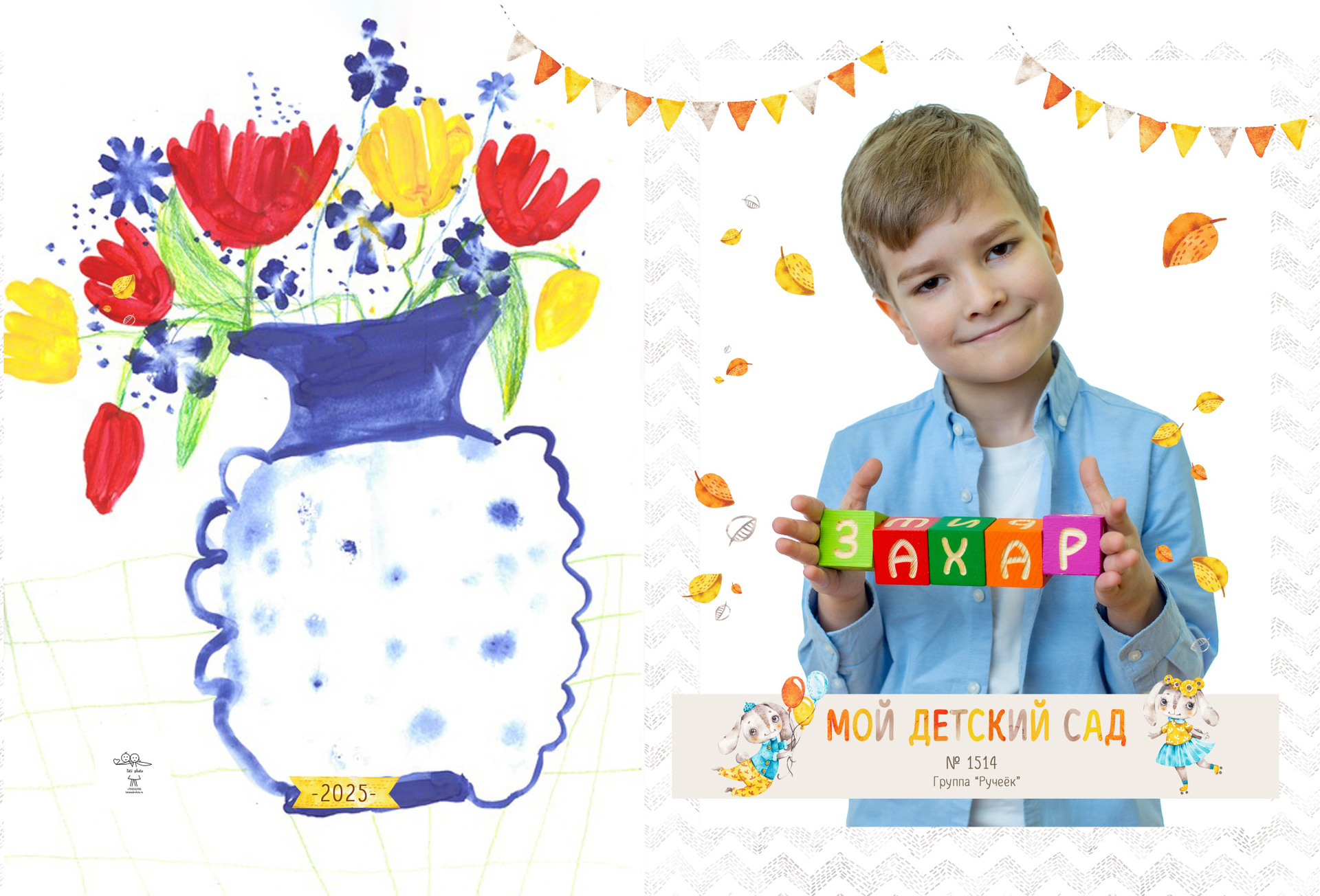 4 разворота — персональные для каждого ребёнка, куда фото выбирают родители
