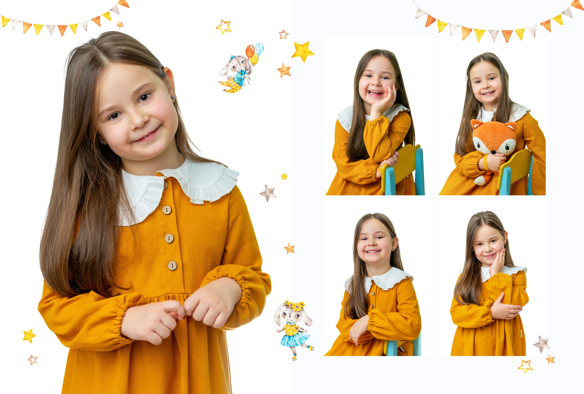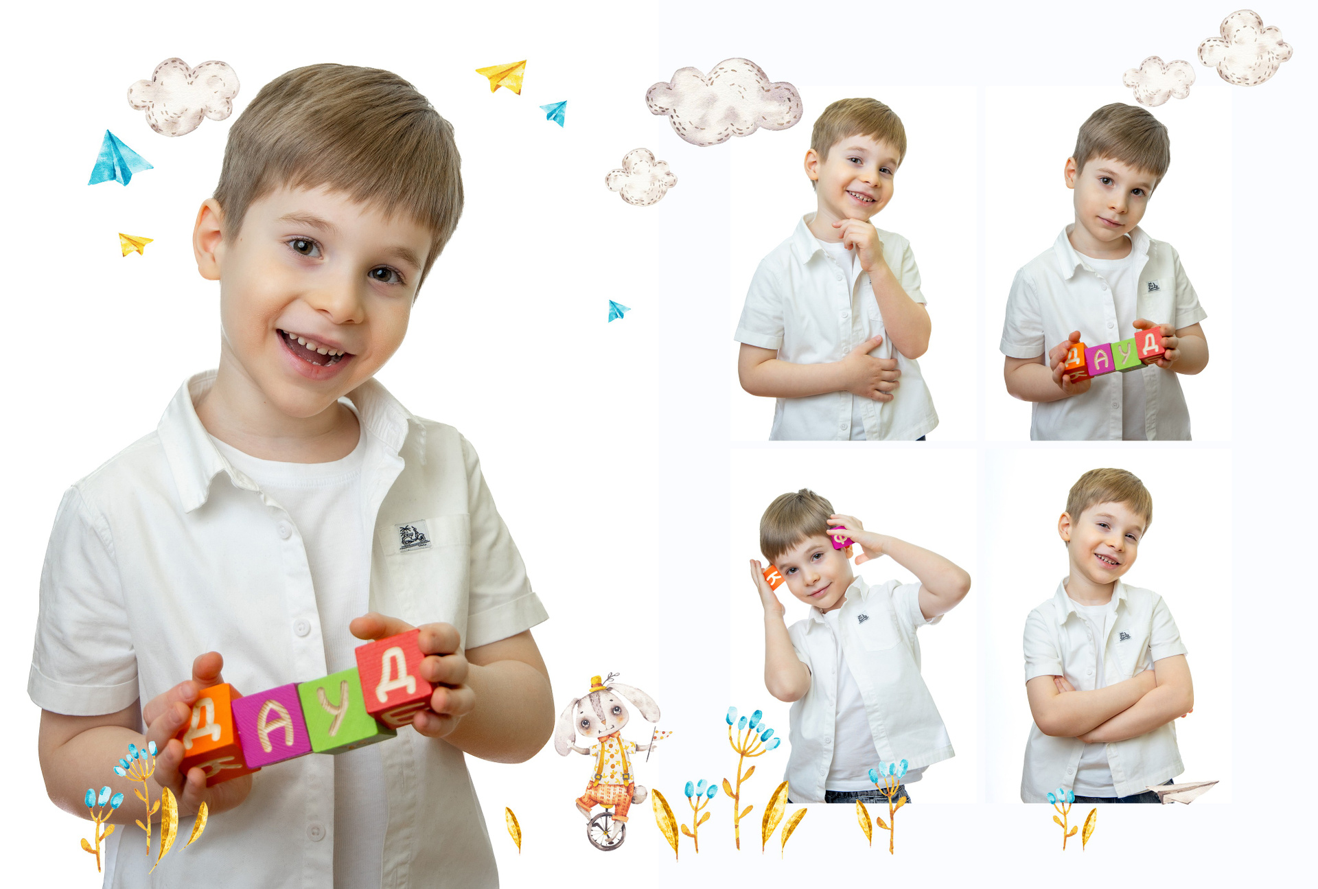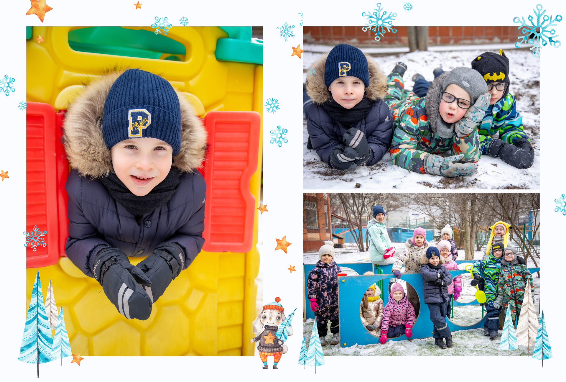4 разворота — персональные для каждого ребёнка, куда фото выбирают родители