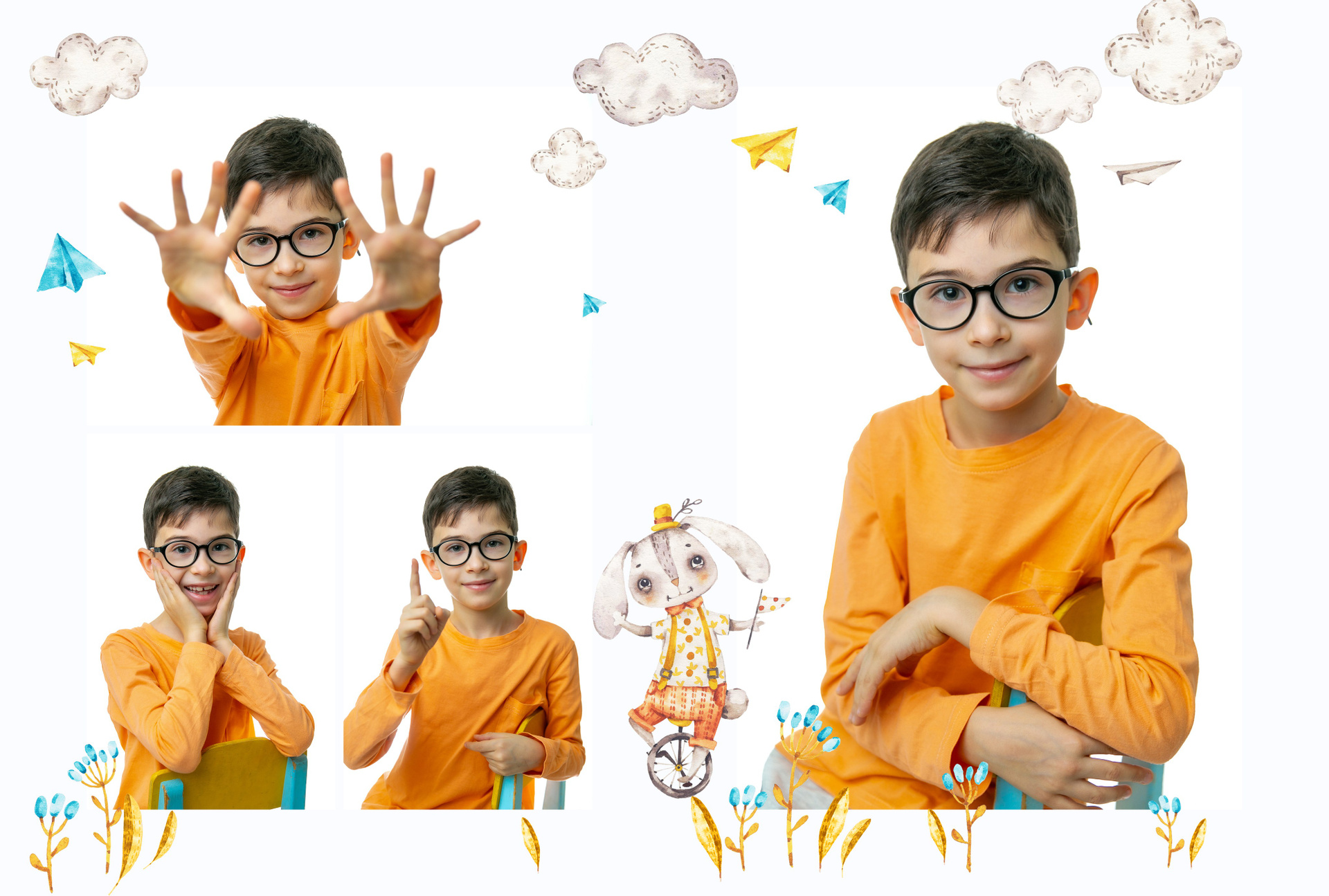 1 день (на студийном фоне) — серия эмоциональных портретных фото ребенка на фоне со студийным оборудованием + с друзьями,